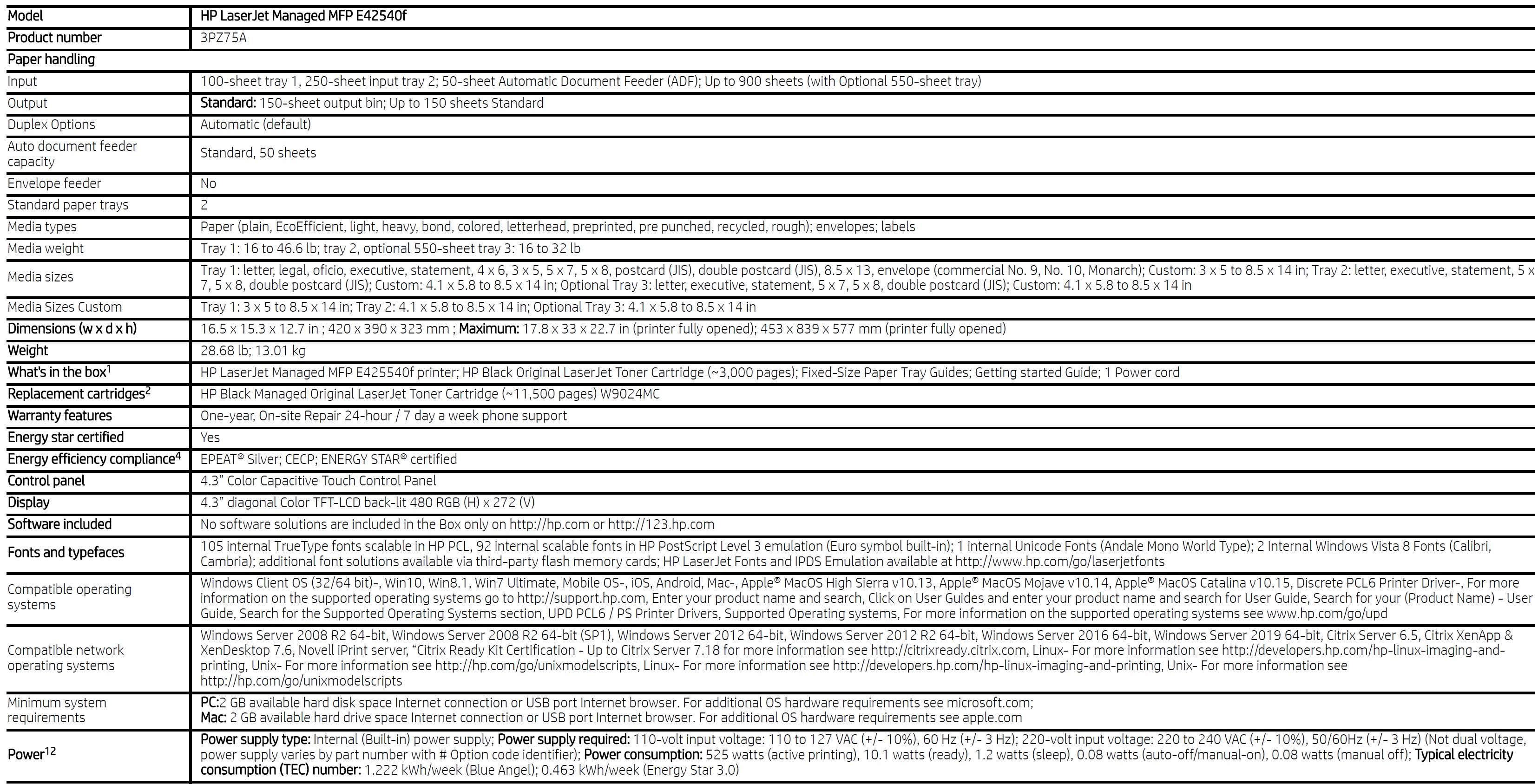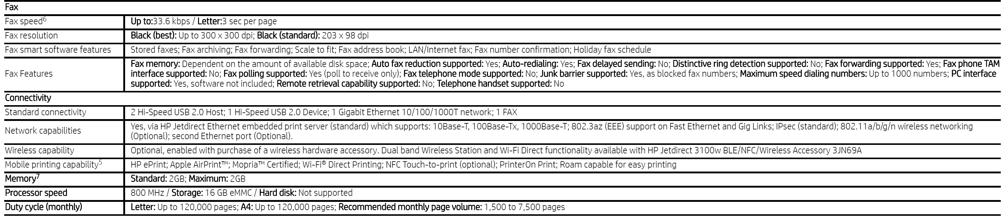 3 First page out measured using ISO/IEC 17629. For more information see hp.com/go/printerclaims. Exact speed varies depending on the system configuration, software application, driver, and document complexity.