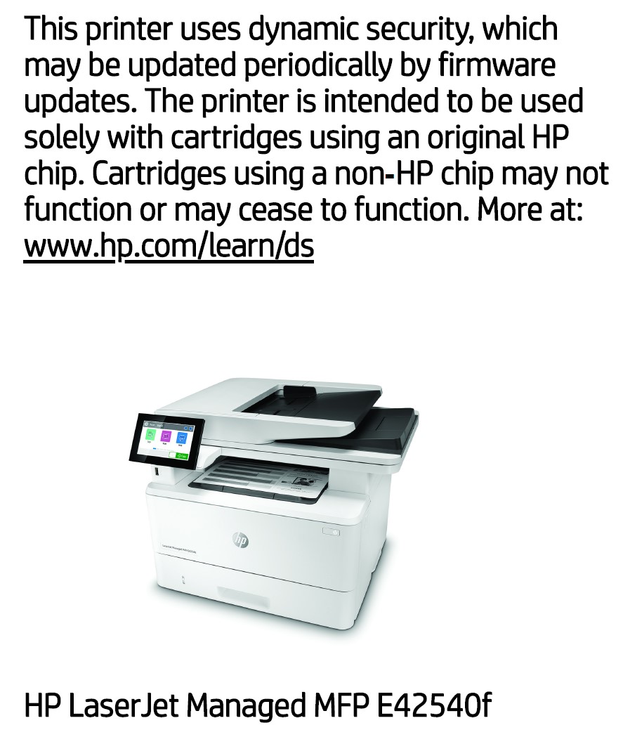1 HP’s most advanced embedded security features are available on HP Managed and Enterprise devices with HP FutureSmart firmware 4.5 or above. Claim based on HP review of 2019 published features of competitive in-class printers. Only HP offers a combination of security features to automatically detect, stop, and recover from attacks with a self-healing reboot, in alignment with NIST SP 800-193 guidelines for device cyber resiliency. For a list of compatible products, visit hp.com/go/PrintersThatProtect. For more information, visit hp.com/go/PrinterSecurityClaims