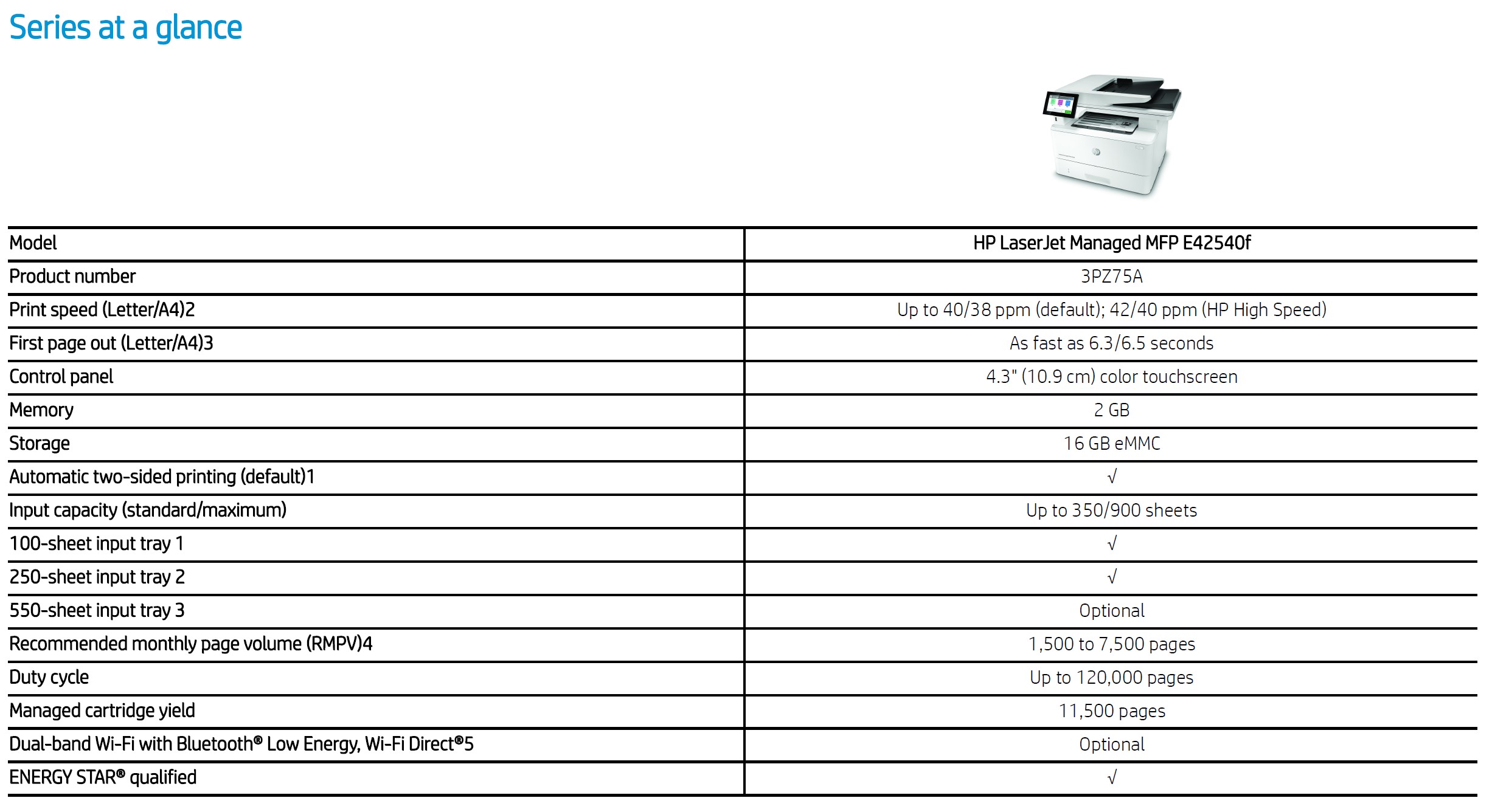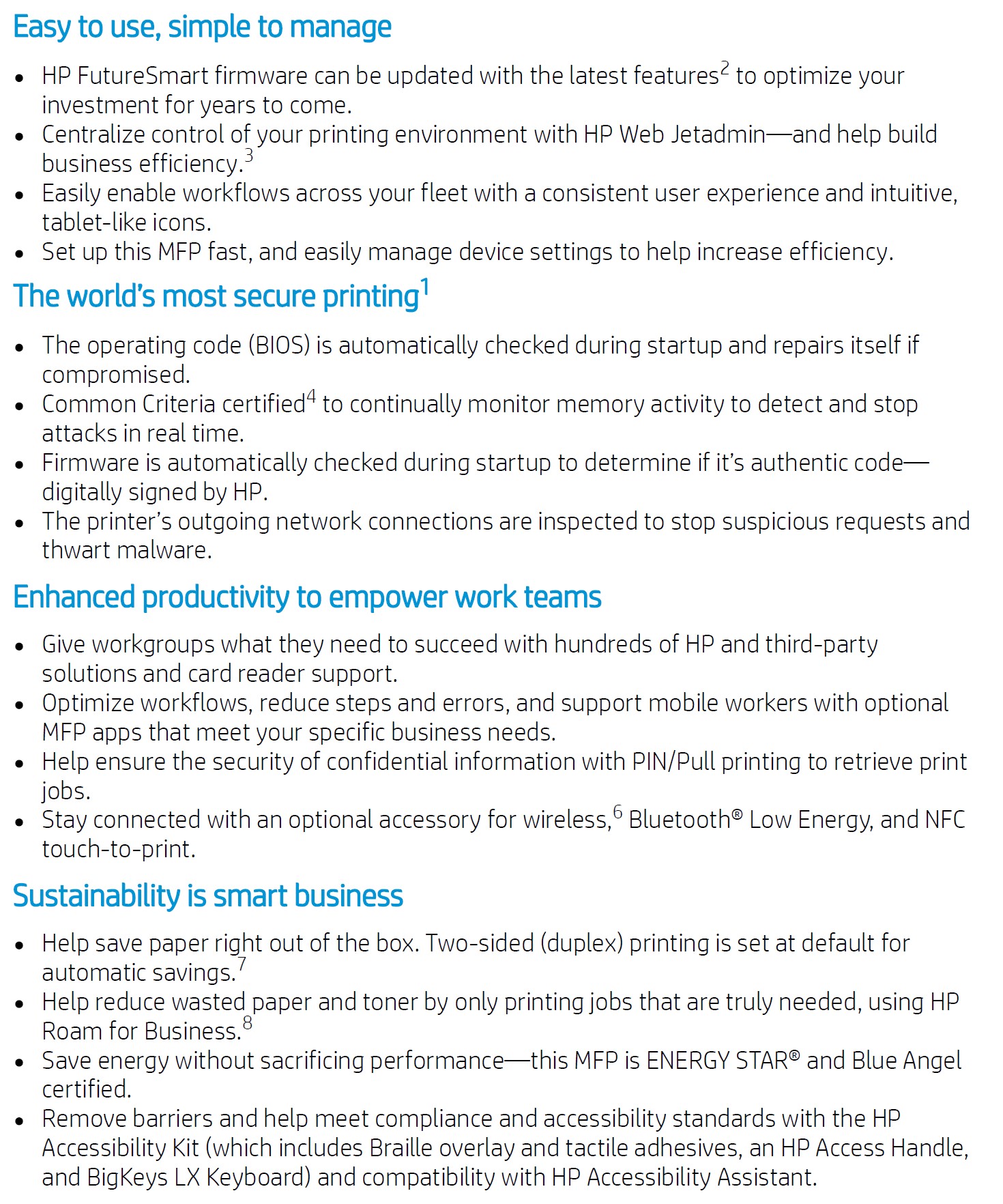 HP’s entry-level Enterprise-class MFP with speeds up to 42 ppm9 and strongest security.1