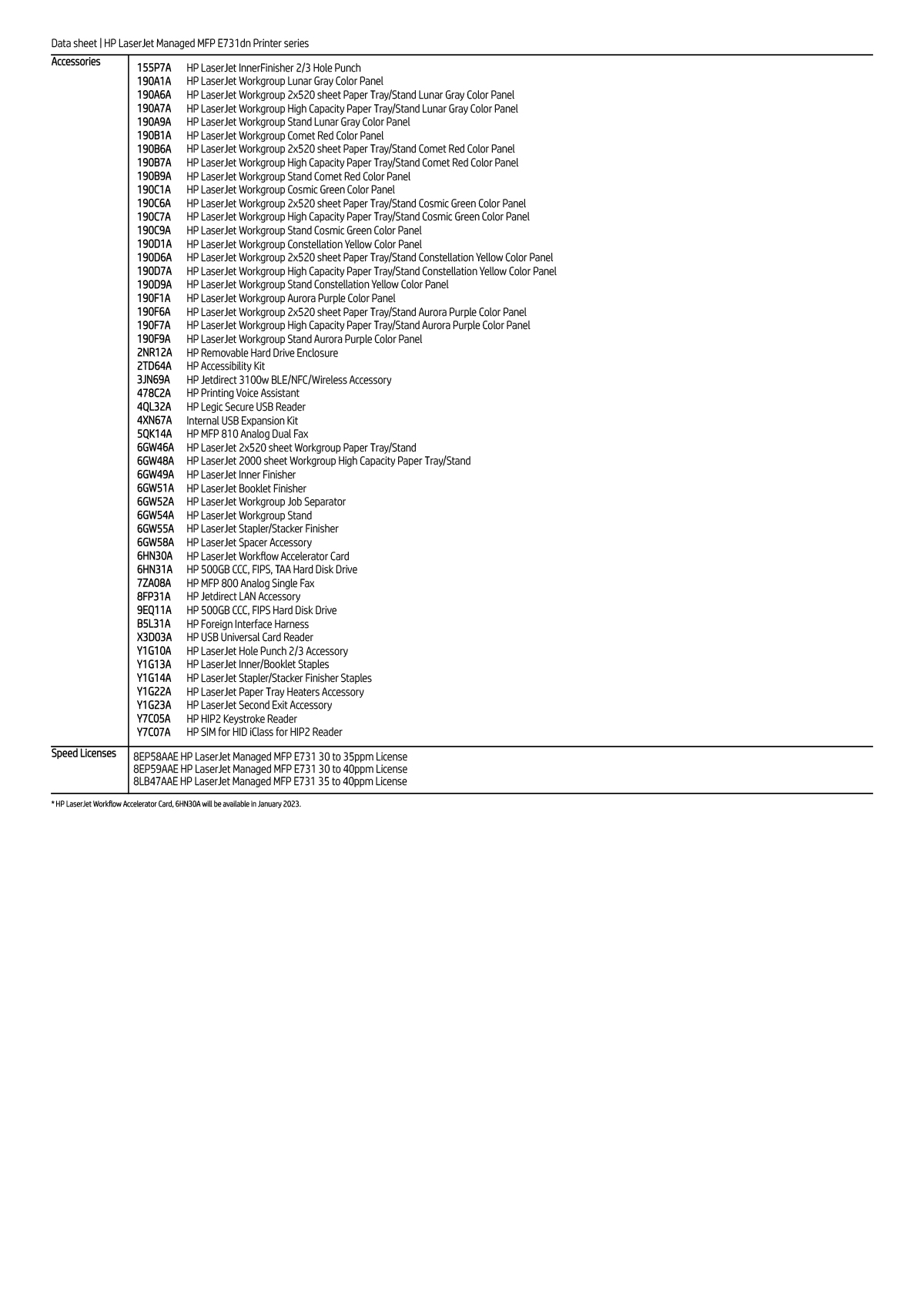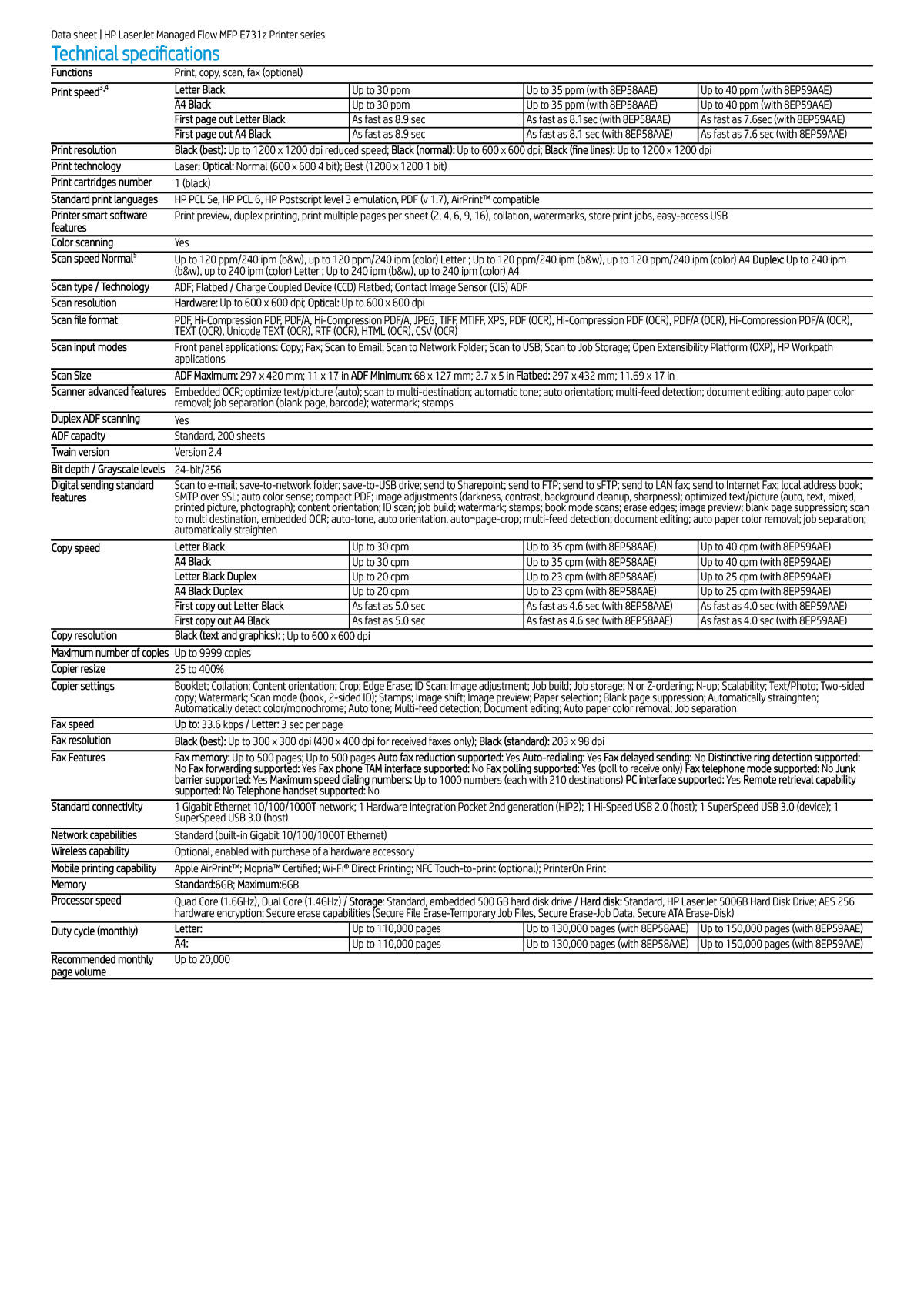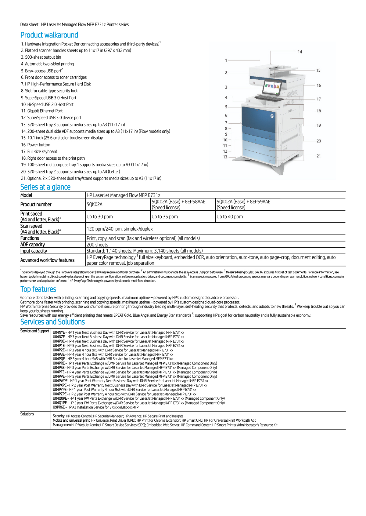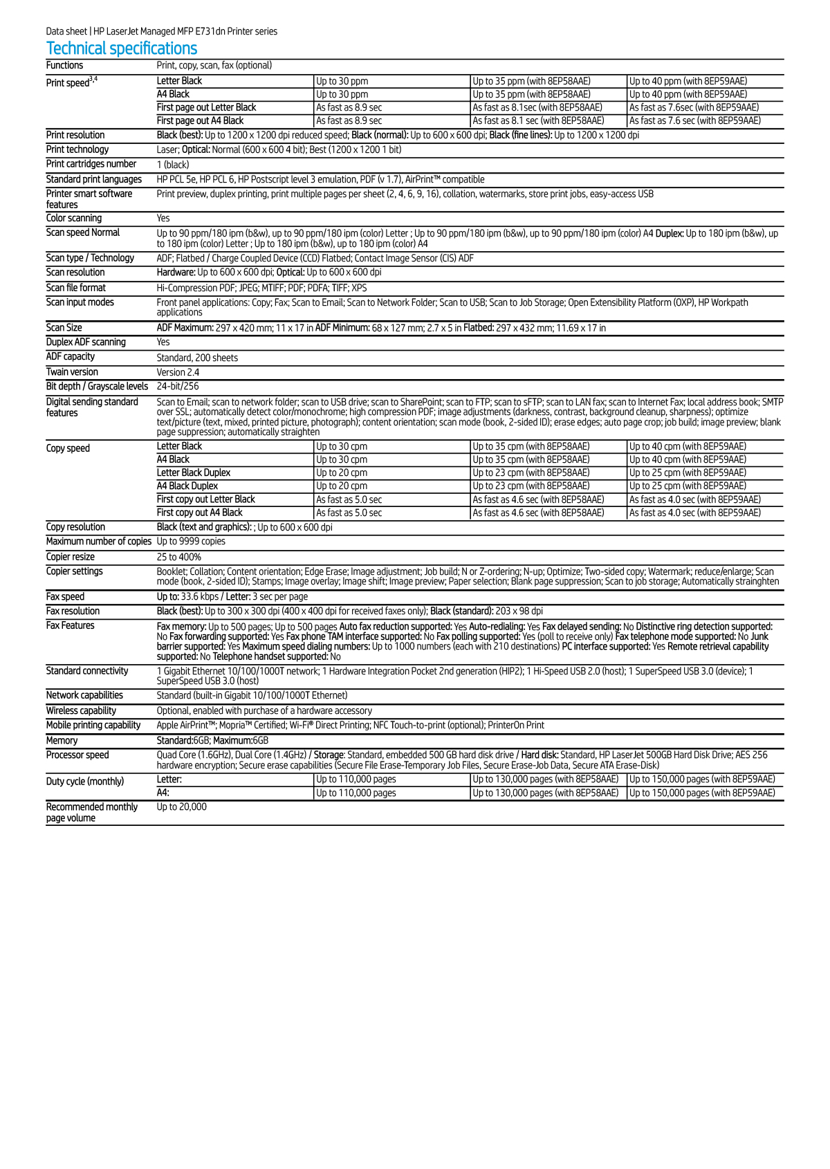 The HP LaserJet Managed MFP E731dn is a secure and efficient A3 black-and-white multifunction printer built for enterprise workflows. It offers fast print speeds, advanced security, and flexible paper handling to keep your business running smoothly at lower cost per page.