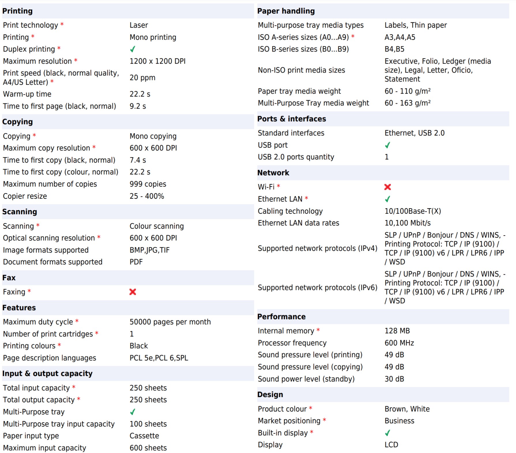The Samsung MultiXpress K2200ND is equipped with a 600MHz processor and 128MB memory to print 20 pages per minute.