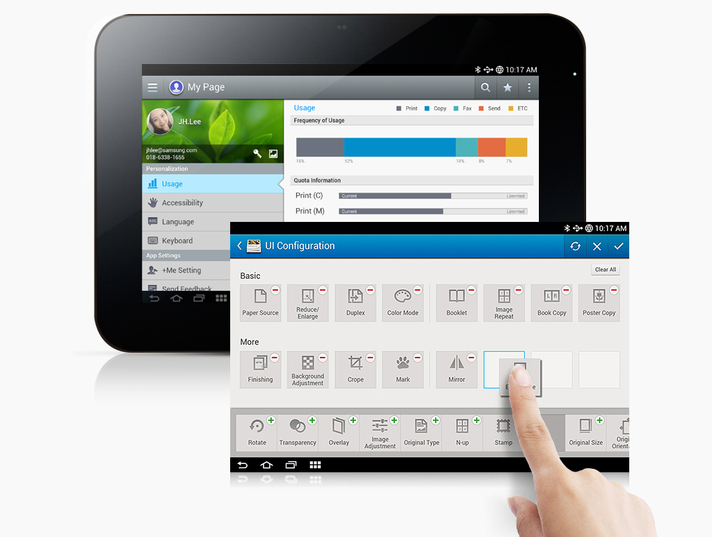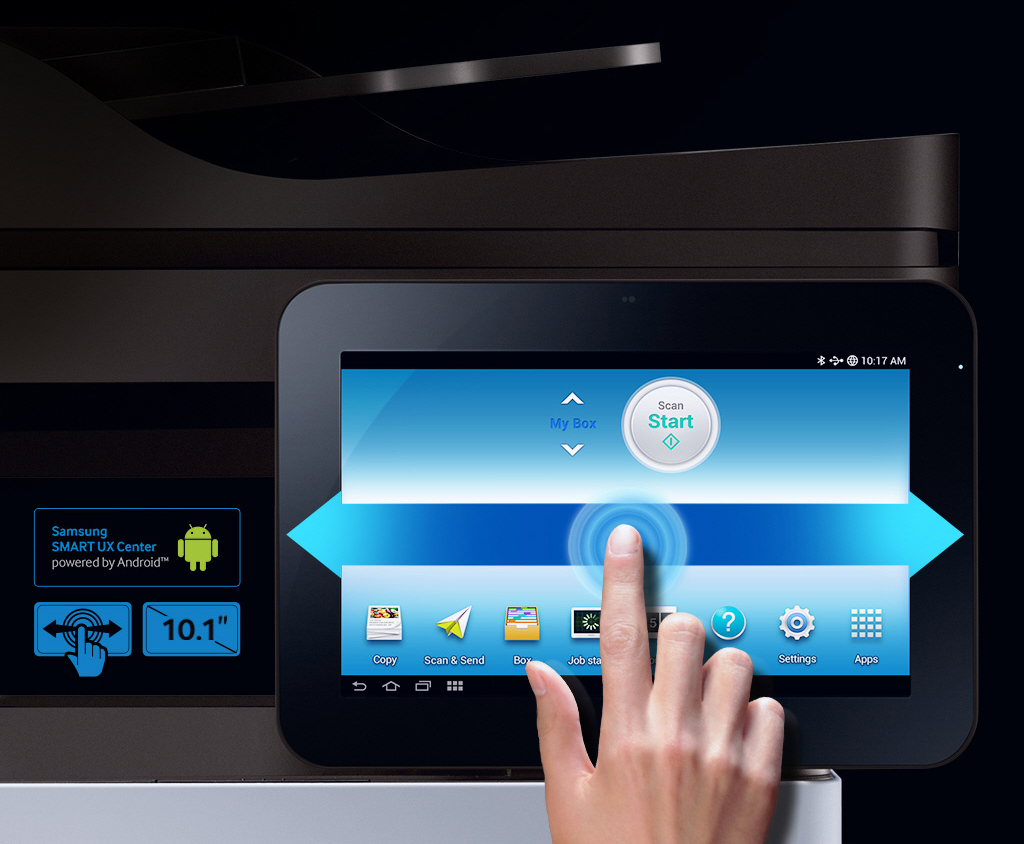 Innovation and usability is built into the SMART ProXpress M4580FX. The Samsung SMART UX Centre is the first smart Android™ printing UX that is intuitive, extendible and ensures compatibility with various Android-based devices.