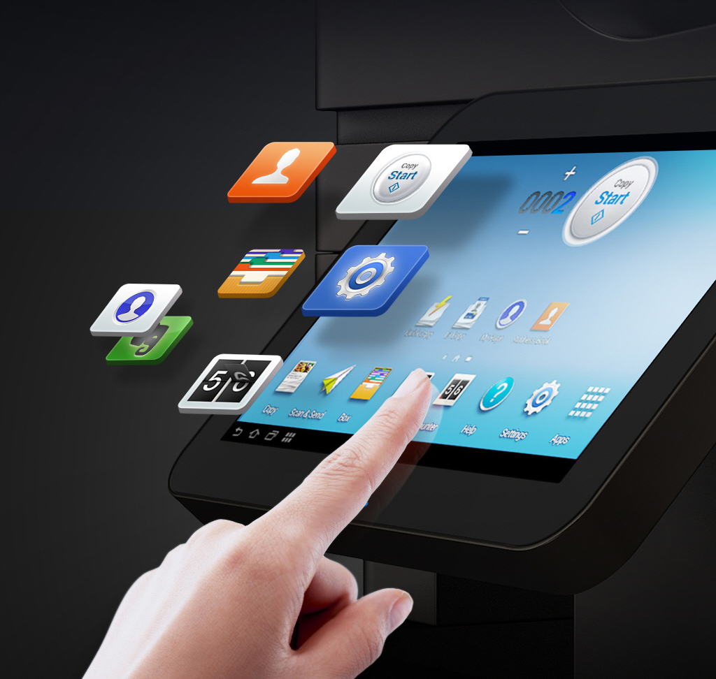 It’s all about convenience and flow. Your favourite applications such as Copy, Scan / Send, Box, Job Status, Address Book and Help come preloaded while custom widgets provide instant access to frequently used functions.