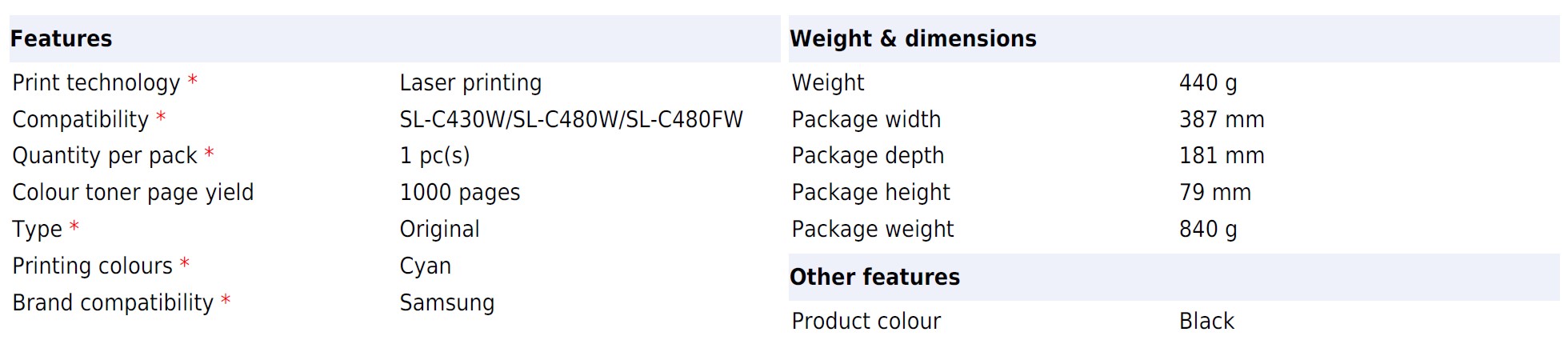 Cyan, 1000 Pages, f / Samsung SL-C430W/SL-C480W/SL-C480FW